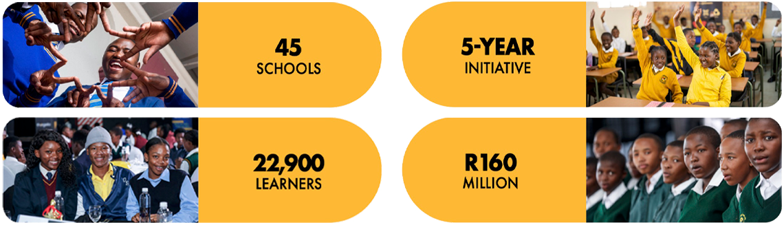 Early in 2024, we launched the Thungela Education Initiative, a five-year partnership with the Mpumalanga Department of Basic Education. The initiative aims to improve educational outcomes for learners in 45 quintile 1–3 primary schools across eMalahleni, Steve Tshwete and Govan Mbeki. These schools serve children from severely disadvantaged financial backgrounds, which makes their parents exempt from paying school fees.