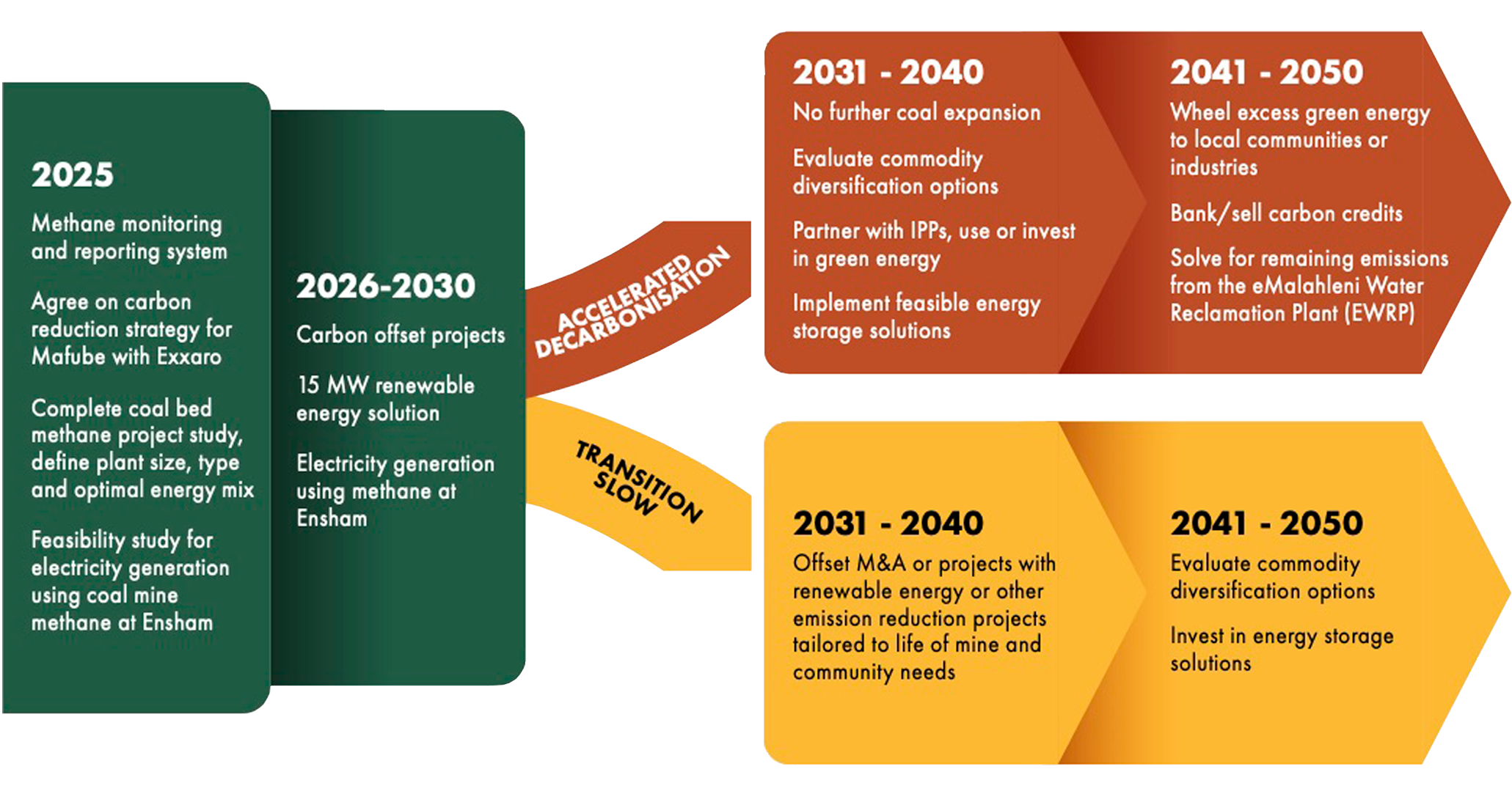We are investigating a wide range of post-closure land use options, with a view to developing a responsible mine closure strategy and maximising our climate change opportunities.